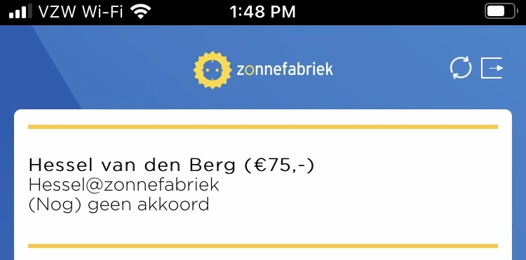 Als de persoon echter nieuw is voor Zonnefabriek, dan krijgt u de melding dat we met hem of haar contact gaan opnemen. De potentiële klant verschijnt in uw lijst van ‘aangedragen klanten’, met de melding ‘(nog) geen akkoord’.